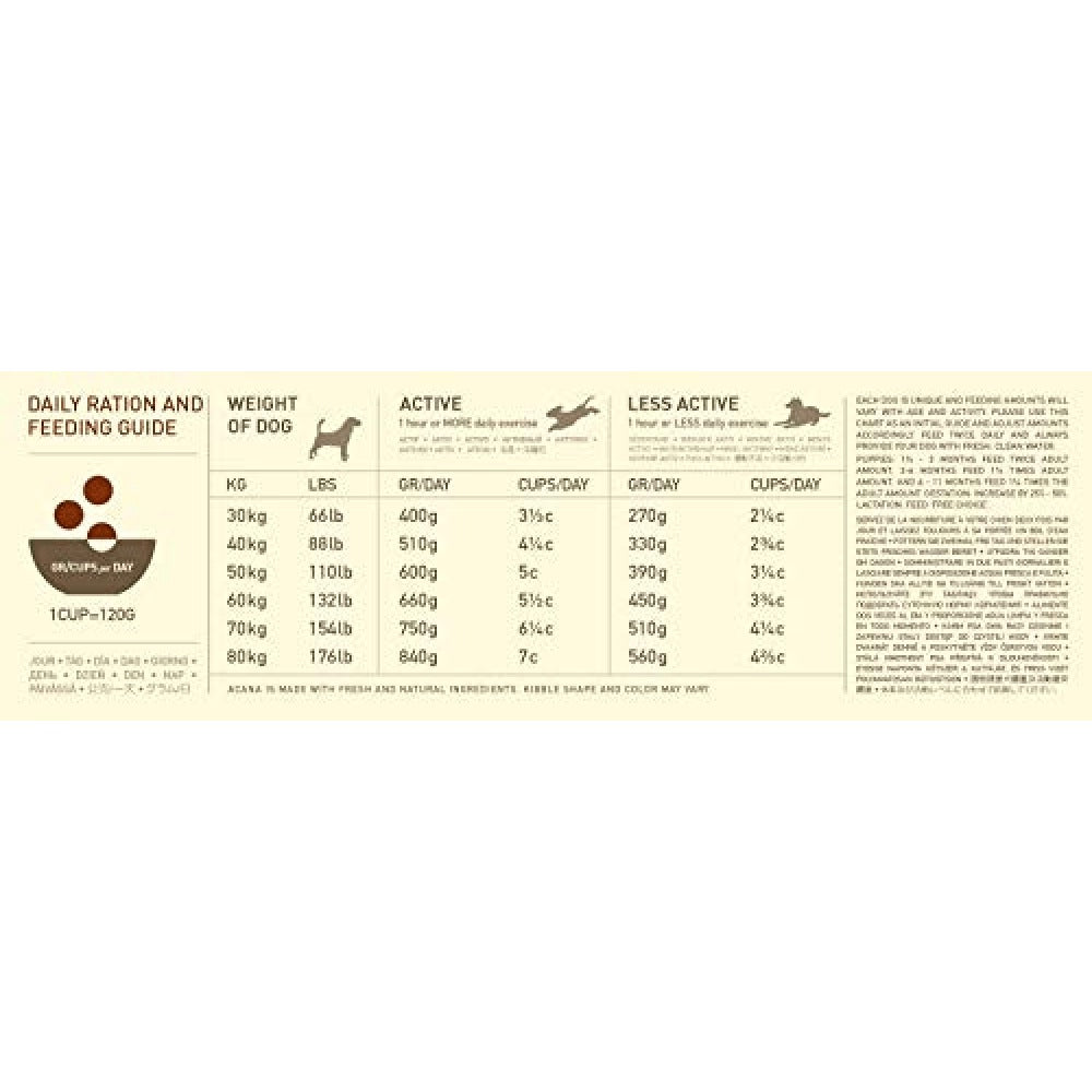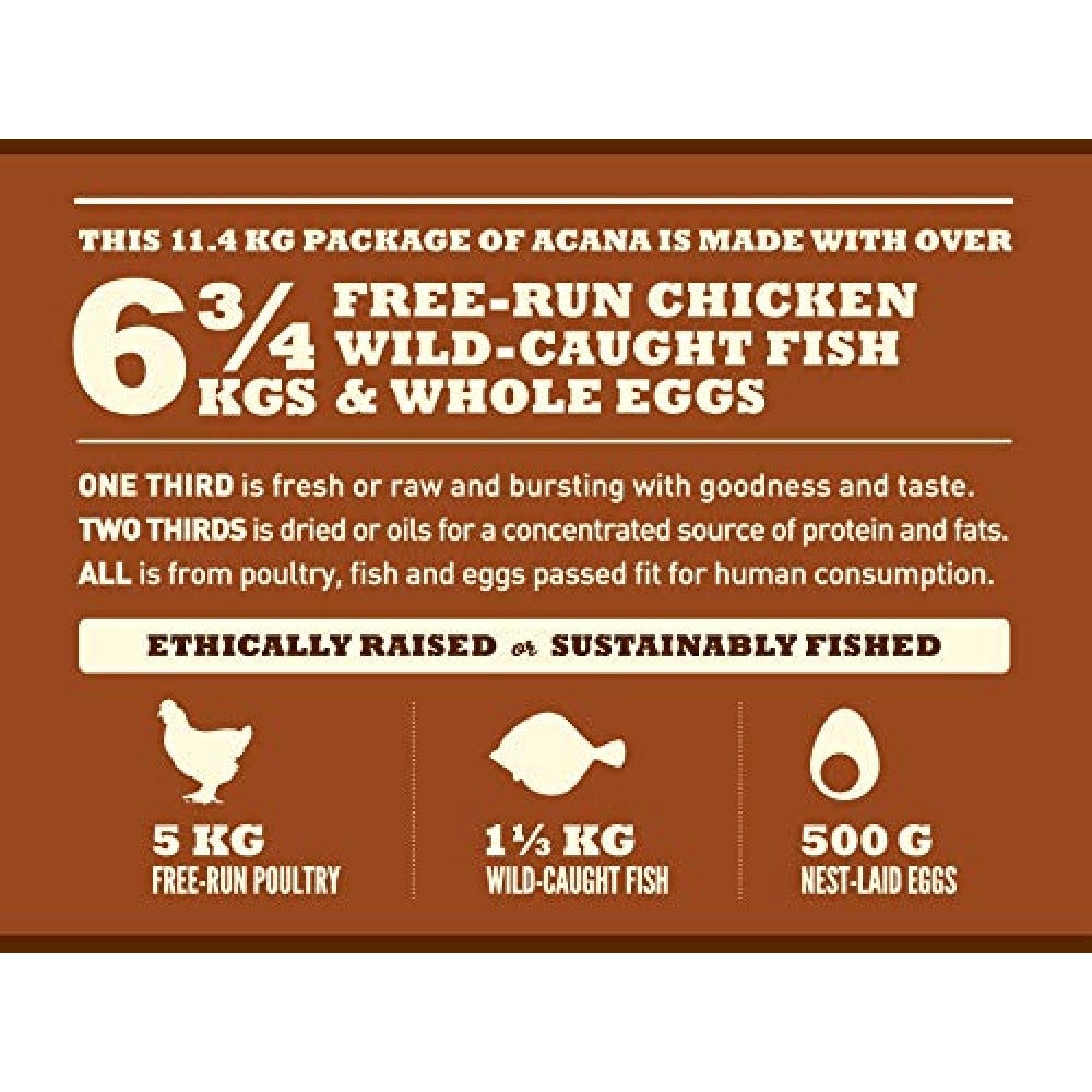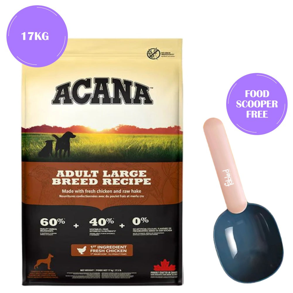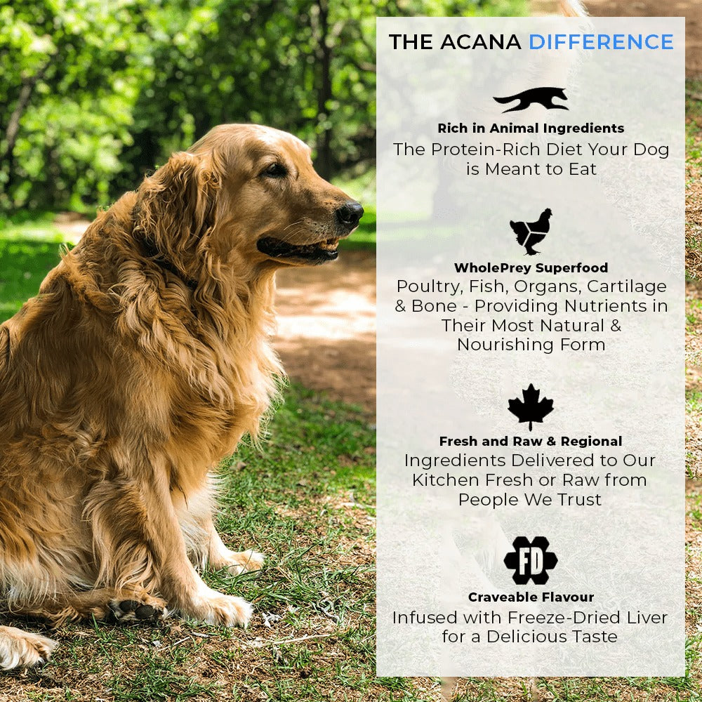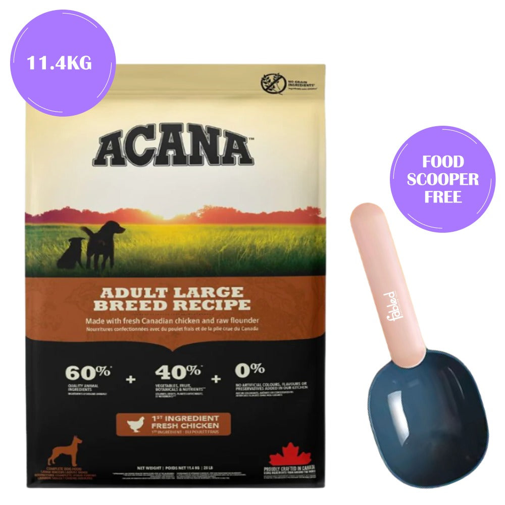 Your large-breed dog has the same anatomy as their wild cousin, the grey wolf, and therefore has the same biologically need for a diet rich and varied in fresh, whole animal ingredients. ACANA Adult Large Breed is loaded with free-run chicken, wild-caught flounder, and cage-free eggs in nourishing Whole Prey ratios of meat, organs, cartilage, and bone, delivering everything your dog needs for peak health in the most natural and bioavailable forms. The best ingredients mean your dog is getting the best nutrition, keeping them happy, healthy, and strong.