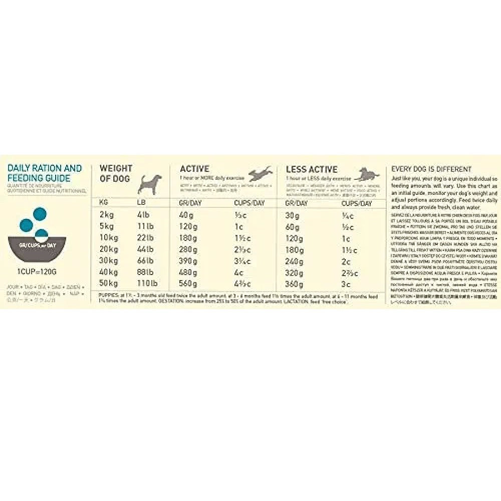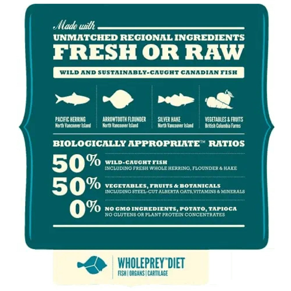 This dry food diet is loaded with fresh fish from the Pacific waters. It also contains low-glycemic carbohydrates from steel-cut oats which help to keep blood sugar stable and optimize physical conditioning.