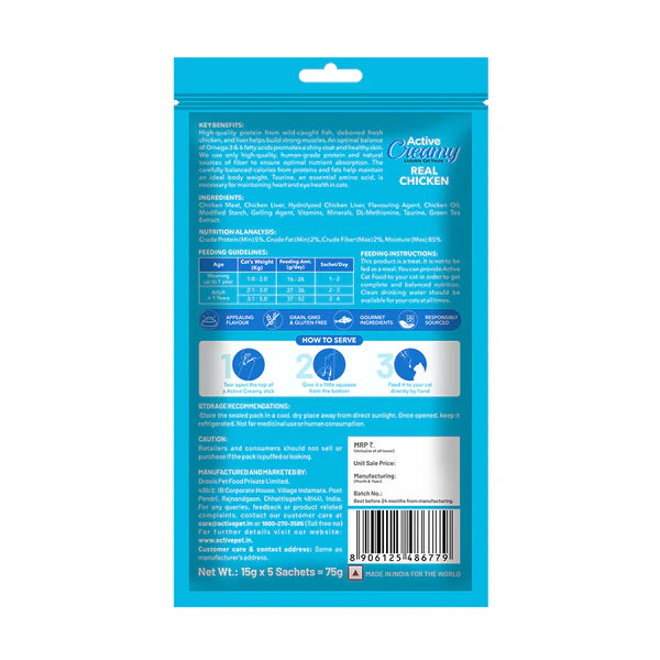 Treat your feline to the irresistible taste of real chicken with Active Creamy Treats. This smooth, lickable snack is enriched with essential nutrients to support strength, vitality, and hydration. Ideal for bonding and training – it’s a delicious way to keep your cat active and happy!