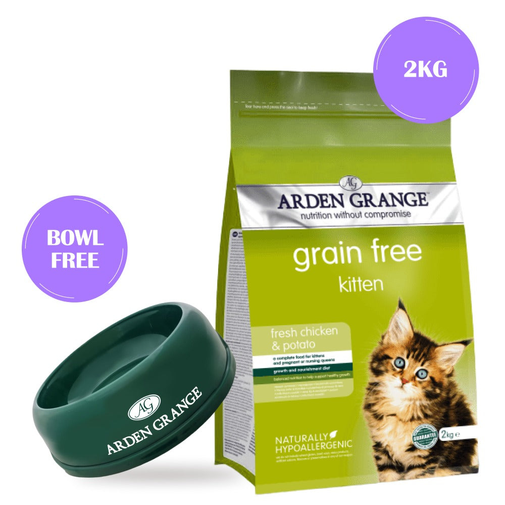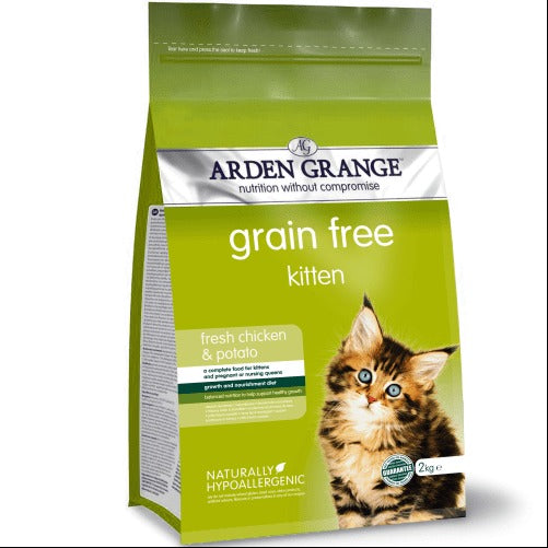 Arden Grange fresh chicken and potato kitten dry food is a grain free recipe. This recipe is free from grains and cereals to more closely reflect a cat’s natural diet, while providing the balanced nutrition required for our domesticated feline friends.