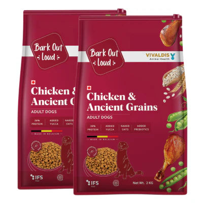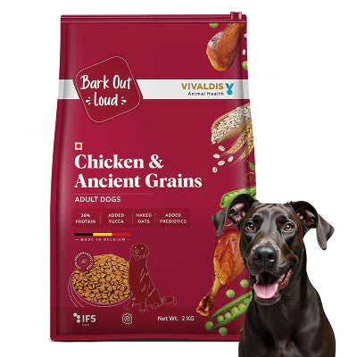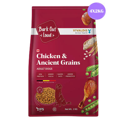 EASY TO DIGEST: Ancient grains like naked oats and barley are easy on the digestive system, making mealtime a delight for your dog. These fiber-rich grains support smooth digestion, ensuring your furry friend enjoys each meal without tummy troubles. You can give ideal nutrition to your pet with Bark Out Loud’s adult dry pet food