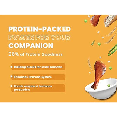 OPTIMAL PROTEIN FOR ENERGY & MUSCLE: With a robust 26% protein content sourced from real chicken, green peas, and liver hydrolysate, this dog food fuels your adult dog's energy levels and supports strong, healthy muscles. Further, this high-quality protein formula helps maintain a healthy weight for your furry companion and supports overall well-being. Give your dog the nutrition they need to thrive with our protein-rich formula, ensuring they stay active and full of vitality.