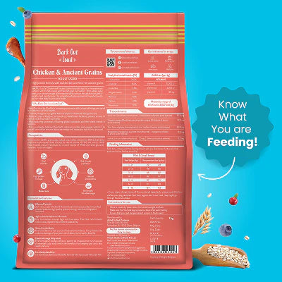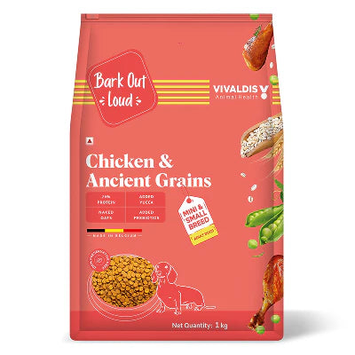EASY TO DIGEST FOR SENSITIVE TUMMIES- Ancient grains like naked oats and barley are gentle on small dogs' sensitive digestive systems. These fiber-rich grains aid smooth digestion, making mealtime comfortable and worry-free.You can give ideal nutrition to your pet with Bark Out Loud’s adult dry pet food.