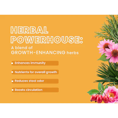 GROWTH ENHANCING HEBRS: The dry puppy food includes essential growth herbs like Yucca, Rosemary, Rosehip, Echinacea & Articum, which help boost your puppy's immunity. A robust immune system not only safeguards your puppy from illnesses but also plays a vital role in their overall development & well-being. These further contribute to improved digestion, and coat health, ensuring that your puppy grows up to be a happy and healthy companion.