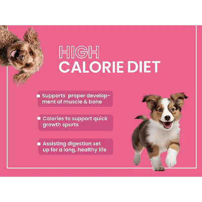 NUTRITION TAILORED TO PUPPIES: Our carefully chosen ingredients are designed to ensure that puppies receive the crucial nutrients required for their healthy growth. With addedCalcium, Phosphorus & Vitamin D3, we help nurture strong bones, providing the solid framework your puppy needs for a lifetime of play & exploration. Furthermore, we offer a high-calorie diet to help them maintain body heat, when their natural heat regulation is still developing.