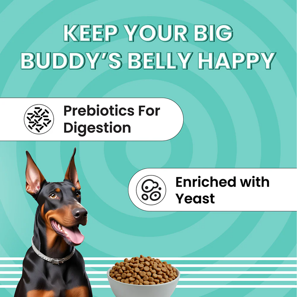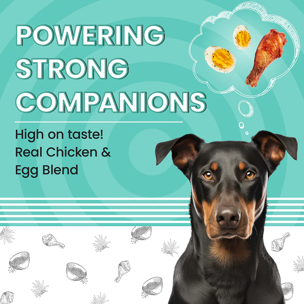 DESIGNED FOR OPTIMAL HEALTH - Our kibble, shaped round with a diameter of 11mm and a height of 5mm, is crafted to be perfect for medium and large breed adults. The composition includes high-quality ingredients such as chicken corn, brown rice, cassava, whole egg powder, chicken fat, fish oil, prebiotics, yeast extract, Yucca Schidigera extract, and antioxidants. Each ingredient is chosen to promote the overall health and vitality of your pet.