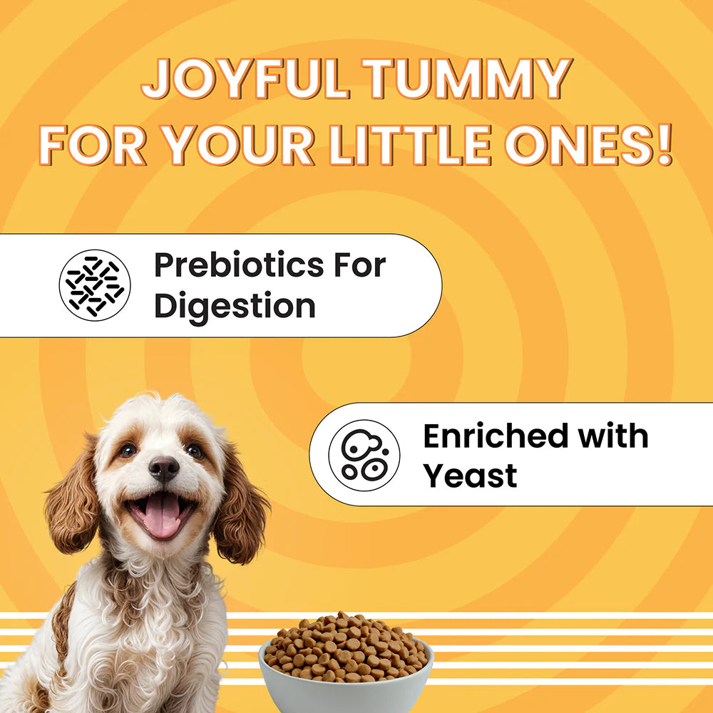 IMMUNE & DIGESTIVE SUPPORT Our Essentials formula is enriched with multivitamins to maintain and boost your pet's immune system. The added prebiotics promote the growth of healthy gut bacteria, ensuring easy digestion and better nutrient absorption. This support for a healthy digestive system enhances your dog's overall well-being, making them more energetic, healthier, and happier.