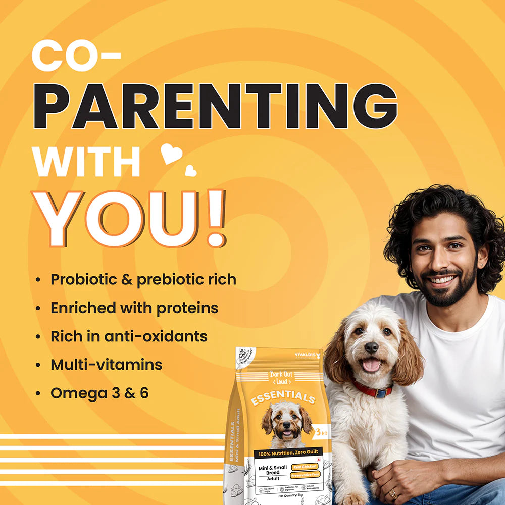 CO-PARENTING WITH CARE -Nurture your mini and small breed adult dogs with love and balanced nutrition. Our Bark Out Loud Essential Range of dog food ensures your pet's daily needs are met with worry-free, complete nutrition. Each meal promotes overall health and vitality, making co-parenting a joyful and affectionate experience.