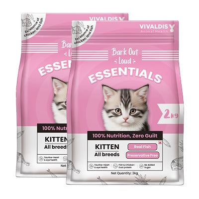 DELIGHT IN VERY BITE - Bark Out Loud’s Essentials is specially designed for kittens, providing a balanced diet that ensures your growing feline friend receives all the essential nutrients they need. Our kitten food is enriched with protein-rich chicken and wholesome ingredients, offering a guilt-free, preservative-free meal that supports overall well-being.