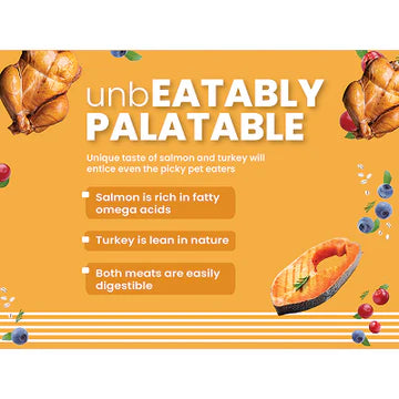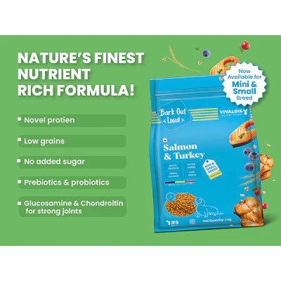 PURE, NATURAL GOODNESS: Your pet's health is our top priority! Our Salmon and turkey adult dog food for mini & small breeds is meticulously crafted without preservatives or added sugars. Embrace the care and devotion your loyal companion deserves with our commitment to using only pure and natural ingredients.
