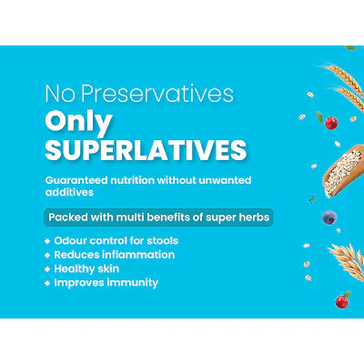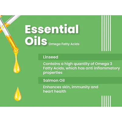 PROMISING ACTIVE JOINTS : Keep your dog's playtime going strong! Our formula, enriched with glucosamine and chondroitin, helps to enhance flexible and resilient joints, ensuring your furry companion is ready for all sorts of adventures. Essential oils rich in EPA and DHA from salmon oil and linseed contribute to a glossy coat and sharp cognitive function.