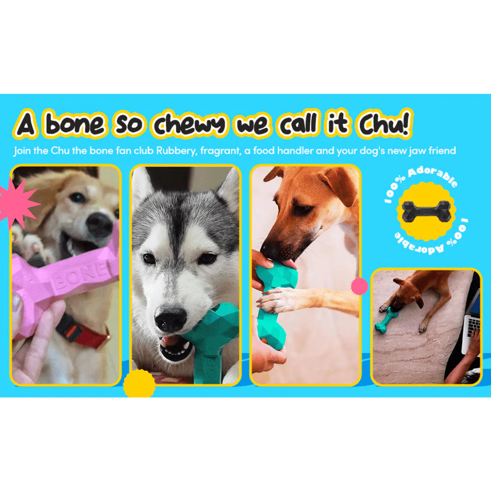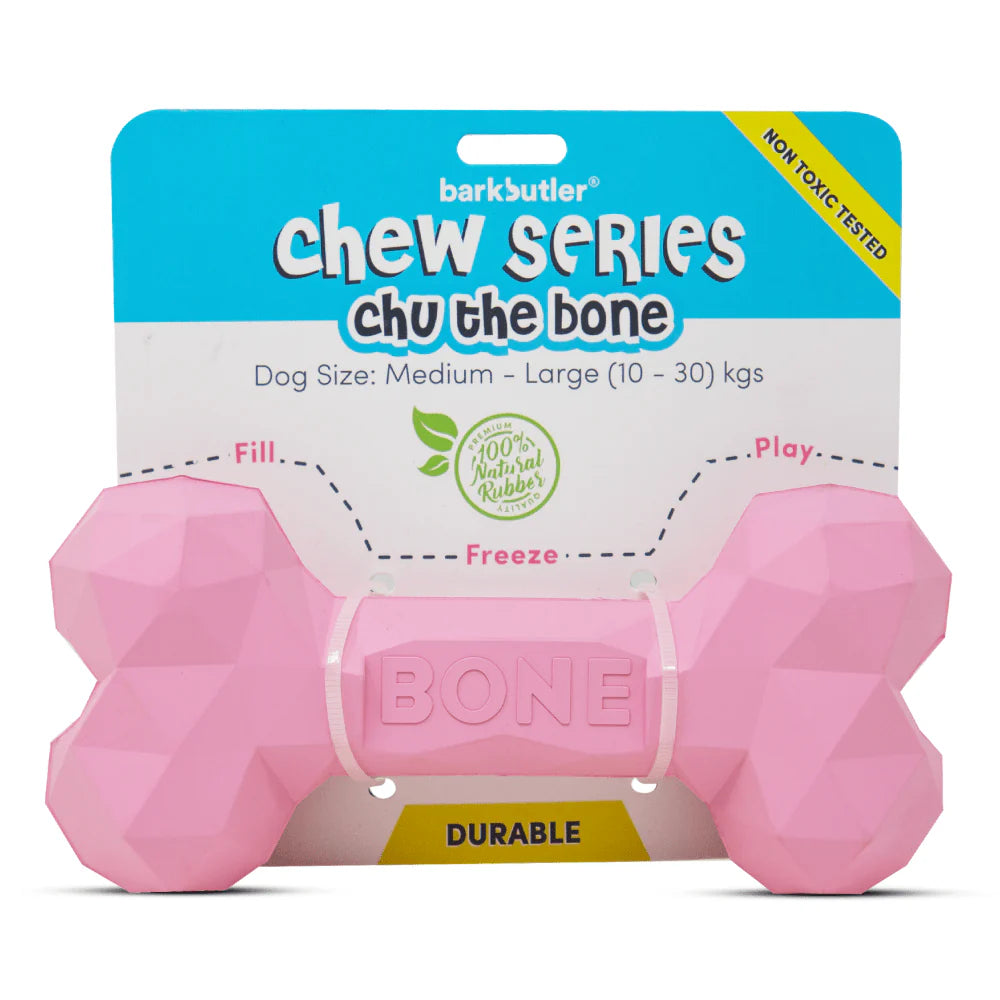 Barkbutler Chu the Bone is a durable dog chew toy made from 100% natural rubber and is gentle and soft on the teeth and gums. This interactive toy is vanilla scented & treat-dispensing which means you can stuff food or treats such as jerkies, peanut butter, and dahi inside the toy, keeping your dog busy while getting the right amount of exercise. Strong chew toys such as these let your dog bite, chew, and tug making playtime engaging. This toy is ideal for medium-large dogs (10-30kg) of various breeds above 1 year of age. This toy is strong but not indestructible and is best suited for pet dogs that have aggressive chewing and fetch playing styles. Not recommended for extremely aggressive chewers.