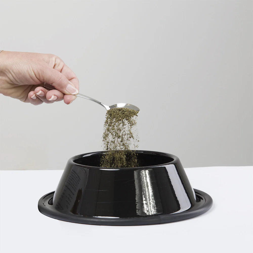 Algolith is a natural sea algae meal, made by fastidious preparation methods and can be used for dogs, cats, birds and small animals. It contains a relatively high percentage of trace elements (e.g. Iodine) and vitamins and therefore has a very favourable action on all bodily functions. Algolith strengthens the natural color of the coat, feathers, eyes and nose, and ensures a healthy, glossy coat/plumage