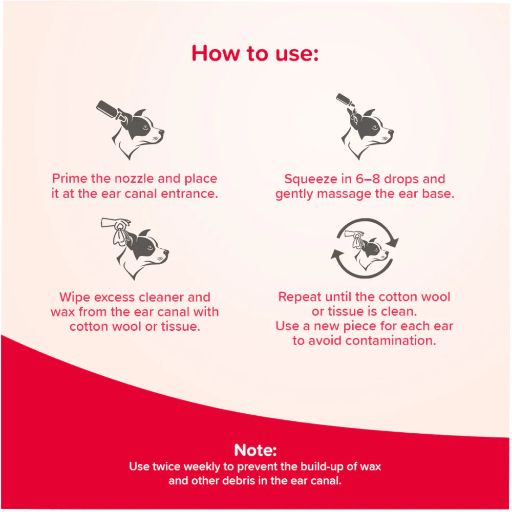 Beaphar Ear Cleaner contains cetrimide to provide a mild antiseptic action, along with cooling menthol to soothe any skin irritation in the ear.
