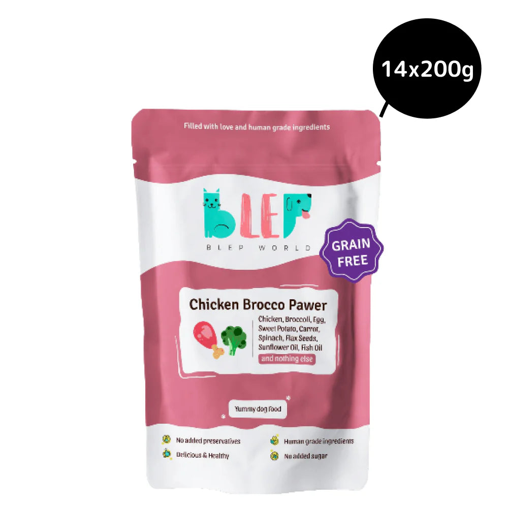 Introducing Chicken Brocco Pawer Fresh Dog Food from BLEP! This premium dog food is the perfect choice for pet parents who want the best for their beloved four-legged family members. Our Chicken Brocco Pawer is made with only the highest quality ingredients, so you can be sure your pup is getting the nutrition they need to lead a long and healthy life. This delicious and nutritious meal is packed with essential vitamins and minerals, as well as natural sources of protein and fibre. Plus, it's free of artificial colours, flavours, and preservatives, so you can feel confident that your dog is getting the best. BLEP's Chicken Brocco Pawer Fresh Dog Food will make your pup happy, healthy and full of energy.