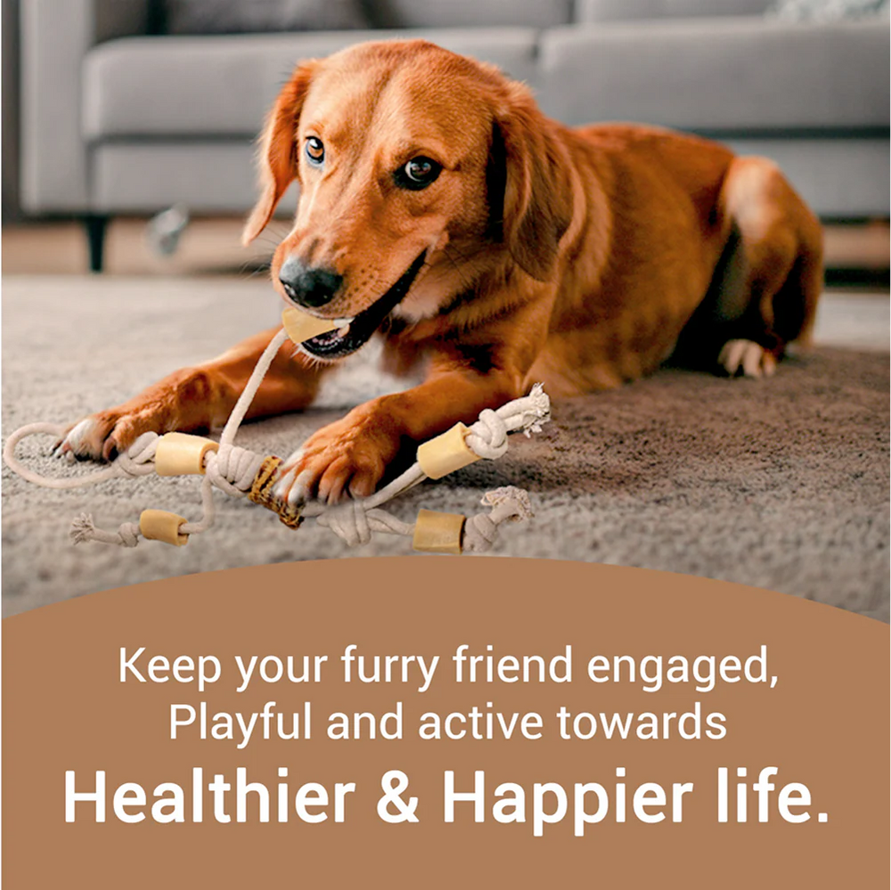 Perfectly sized for small to medium dogs, the Marionette Rope Toy is both durable and washable, making it a practical and long-lasting addition to your dog’s toy collection.