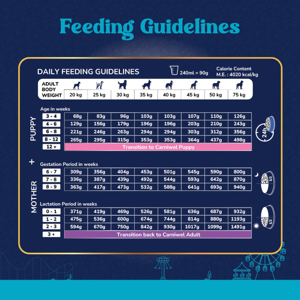 Carniwel Dry Dog Food is specially designed for weaning large breed puppies. The kibble can be easily rehydrated to a porridge-like consistency, making it perfect for young puppies. Its high palatability ensures a smooth transition to solid food. Packed with fresh chicken, cereals, Antarctic krill, and vegetable fibers, Carniwel provides complete nutrition for healthy growth. The formula supports healthy digestion and optimal nutrient absorption, ensuring puppies get the most out of every meal. Rich in essential nutrients, Carniwel boosts energy levels, keeping puppies energetic and thriving. Choose Carniwel to give your large breed puppies the best start in life with balanced and delicious nutrition.
