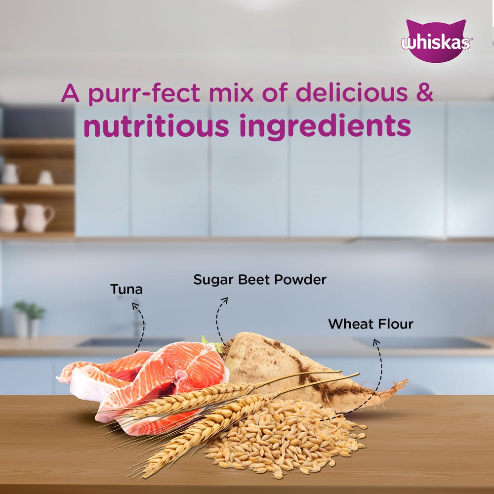 Whiskas kitten gravy food provides complete nutrition and is an irresistible cat food for your special furry friend. Celebrate this by feeding your cat with a delicious festive treat for cats. A complete and balanced cat food, Whiskas gravy is designed to take care of baby cat’s daily nutritional requirements, provide it with all the required vitamins and minerals along with moisture and nourishment for a healthy and happy life, making it an ideal Treat. A cat's love for fish is thoughtfully blended with loads of calcium, phosphorus, proteins, antioxidants, vitamins and minerals, in each pack. This cat treat helps maintain its fur, heart-health, weight, skin, teeth, muscles, bones and overall immunity. Whiskas gravy has a texture and aroma that appeals to the palate of feline and attracts even fussy eaters in for a filling and fun meal time.