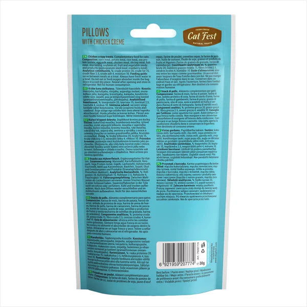 Catfest Pillows with chicken Cream for Cats is the perfect treat for your furry friend. Made from 100% natural and healthy ingredients, free from artificial flavors, colors, and preservatives, these treats are farm-fresh and high in protein. The crispy crust and delicate chicken cream filling make these treats highly palatable and irresistible to cats of all breeds. Perfect for adult cats, kittens, and even Persian cats, these treats are the best choice for a healthy and nutritious snack. Whether for training, snacking, or just because, Catfest Pillows with chicken Cream for Cats will have your cat meowing for more!