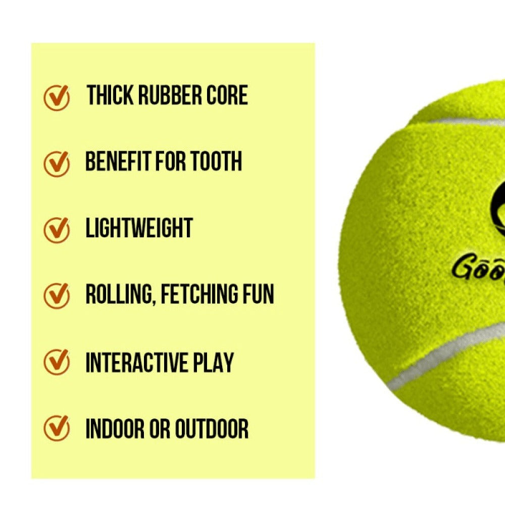Goofy Tails dog tennis ball is the perfect all-breed dog. The dog ball encourages your dog to run, fetch, and exercise, keeping them happy and healthy. The dog toy balls are made from resilient non-toxic material, so it is safe for your dog. This Solid Ball is a classic design that belongs in every dog's toy box. Its size is perfect for tossing long distances. We recommend supervising your pet during playtime.