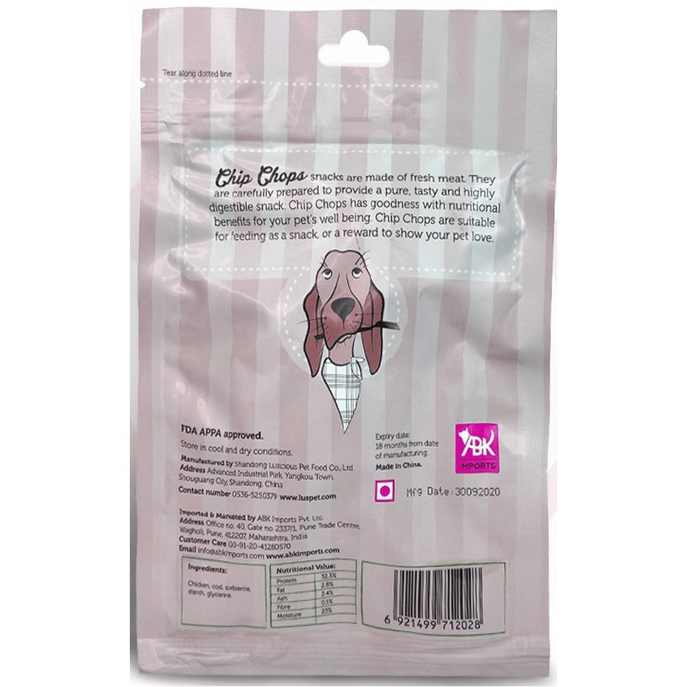 Chip Chops Chicken & Fish Sushi Rolls - Puppies and Adult is made of fresh Chicken & Fish which makes up to the 85% meat content in the treat and is a source of highly digestible protein that helps in strengthening the bones and muscles is a tasty treat which has balanced nutrients, no added sugar and helps in keeping the breath fresh. These Treats are packed in an easily resealable packet for your convenience.