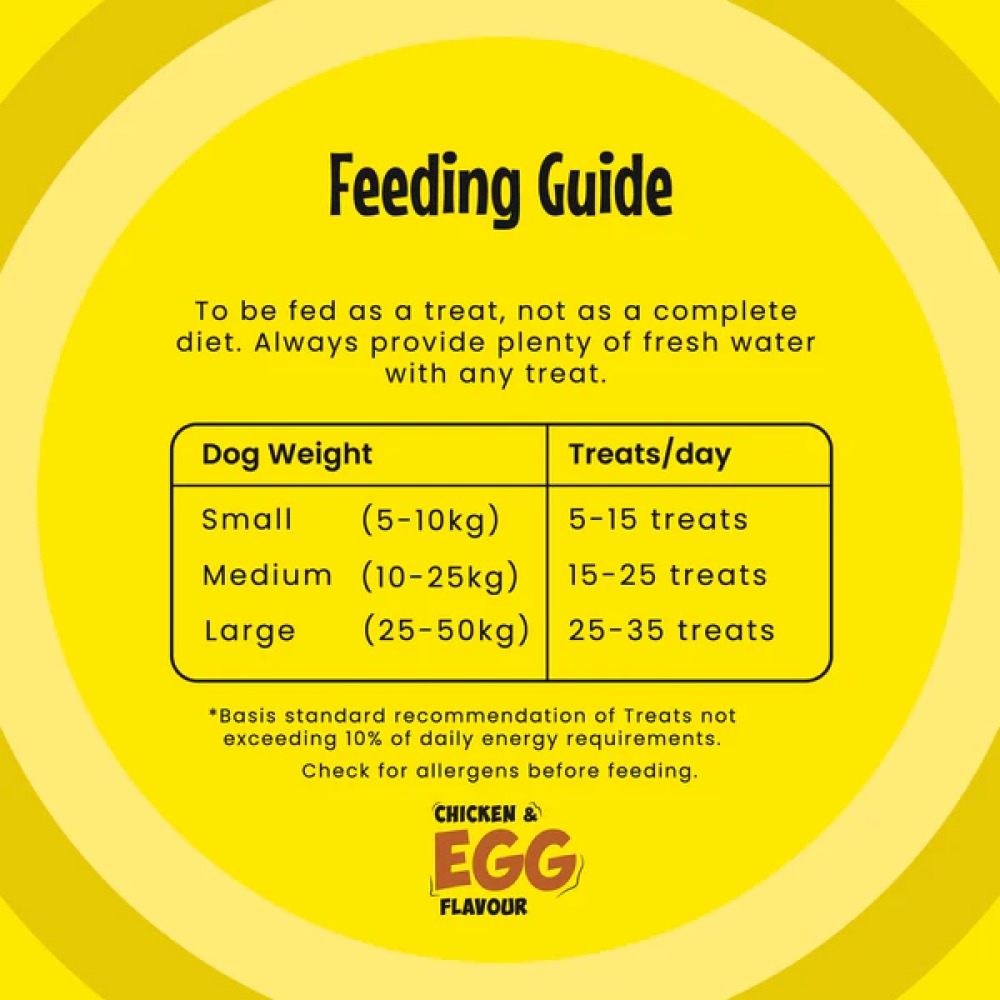 A paw-some creation that'll have your pooch drooling for more – 'DatGud' Chicken Biscuits in Chicken & Egg Flavour! Made with real chicken.