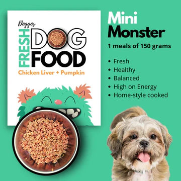 Doggos Mini Monster is a meals of 150 grams, its filled with freshest of ingredients that's not only good for your dog's health, but also for a balanced nutrition. This is an ideal every day Fresh dog food, packed with all vitamins and minerals for overall health of the dog. Good for all dogs above 3 months.