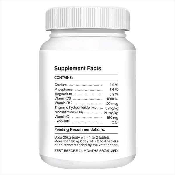 Drools Absolute Calcium Dog Supplement Tablets are meticulously designed to support your dog's overall bone health and development. These tablets are rich in essential nutrients that promote healthy bones and teeth, ensuring your furry friend stays active and energetic. Whether you have a growing puppy or an adult dog, Drools Absolute Calcium Tablets provide the perfect dietary supplement to enhance their bone strength and vitality.