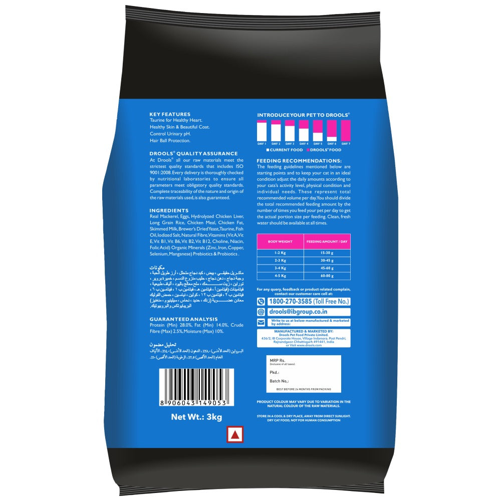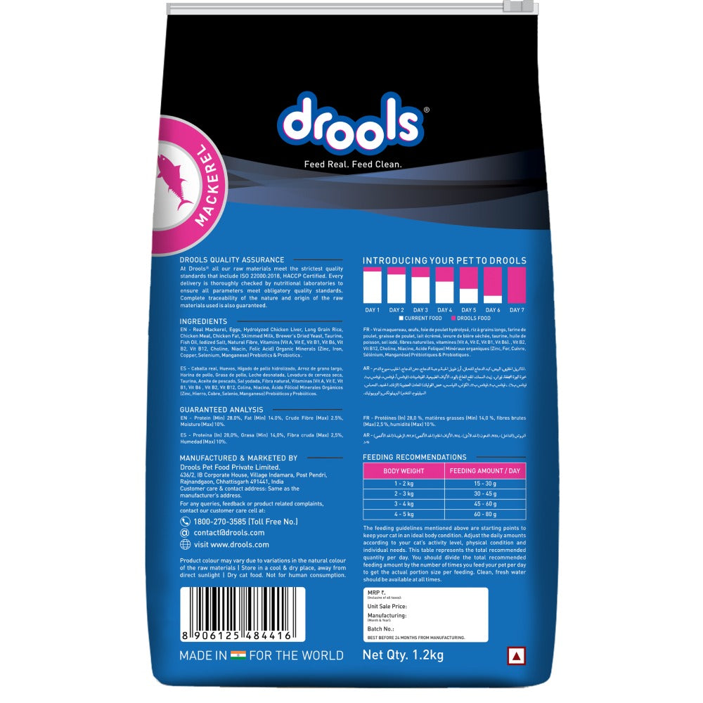Drools Mackerel Adult Cat Dry Food is a premium cat food designed to provide your feline friend with the essential nutrients they need to thrive. Specially formulated for adult cats, this delicious dry food features mackerel as the primary ingredient, ensuring high-quality protein and a taste that cats love. Rich in essential fatty acids, vitamins, and minerals, this balanced diet supports overall health and well-being, making it an ideal choice for maintaining your cat's vitality and happiness.