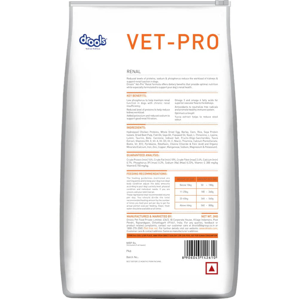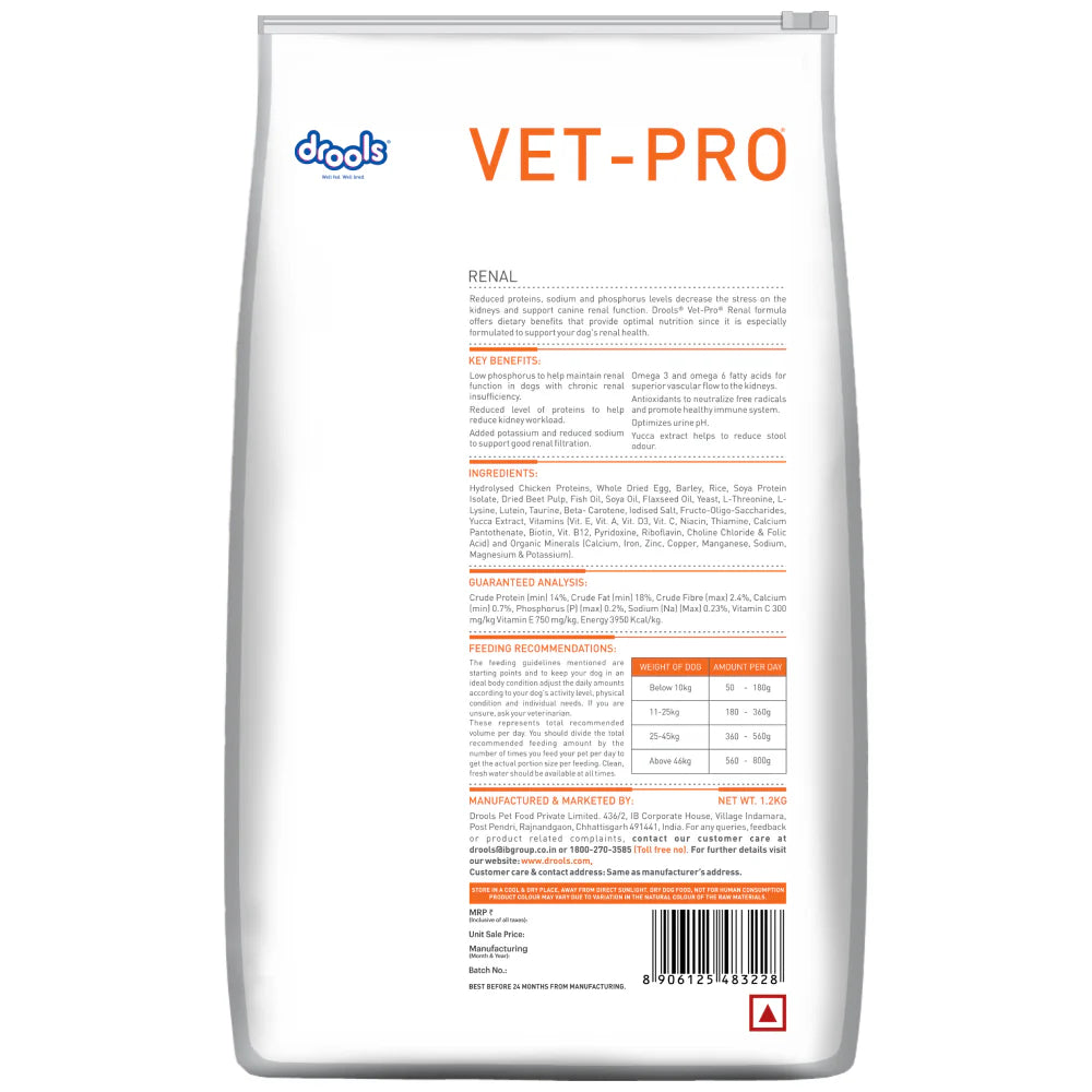 Reduced levels of protein, sodium and phosphorous reduce the workload on kidneys and support renal function in dogs. Vet Pro Renal formula offers Dietary benefits that provide optimal nutrition while specially formulated to support your dog’s Renal health. It is formulated in the US by veterinarians and animal experts based on the particular requirement of the pet with kidney issues. It can be advised as a nutritional support urinary incontinence, weight loss and loss of appetite, increased thirst and urination, Ulcers in the gums Blood in urine during old age.