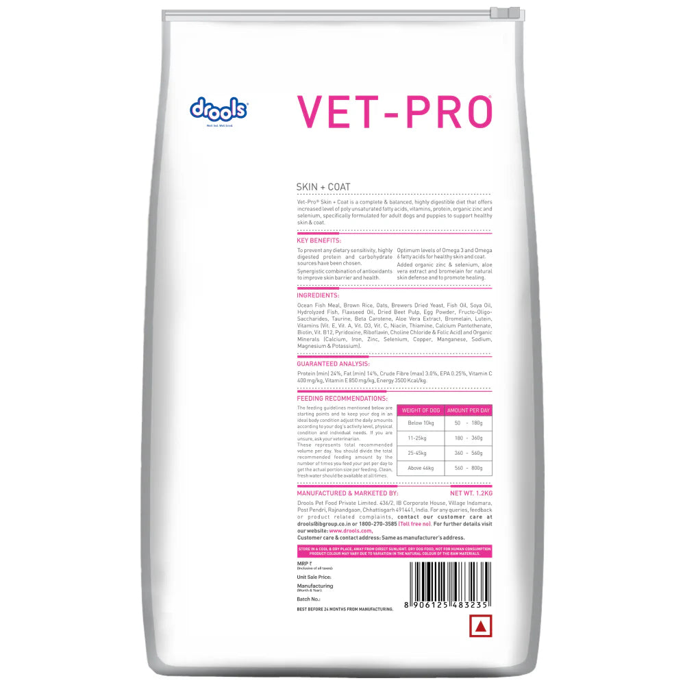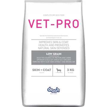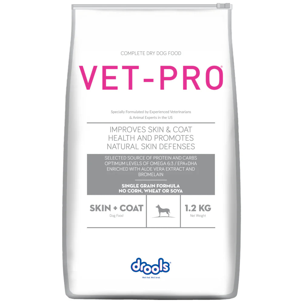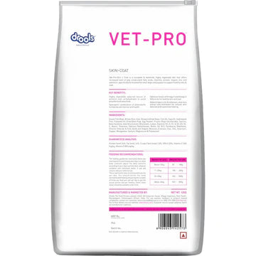 Vet Pro skin and coat is a complete and balanced highly digestible diet that offers an increased level of polyunsaturated fatty acids, vitamins, protein, organic zinc and selenium, specifically formulated for adult dogs and puppies to support healthy skin and coat. Completely formulated in the US by veterinarians and animal experts based on the particular requirement of the pet with the skin and coat issues. It can be advised as a nutritional support in case of Demodicosis and Sarcoptic Mange, Canine idiopathic seborrhea, Canine atopy, Flea-allergic dermatitis, Generalised itching and rubbing, Generalised redness and hair loss conditions.