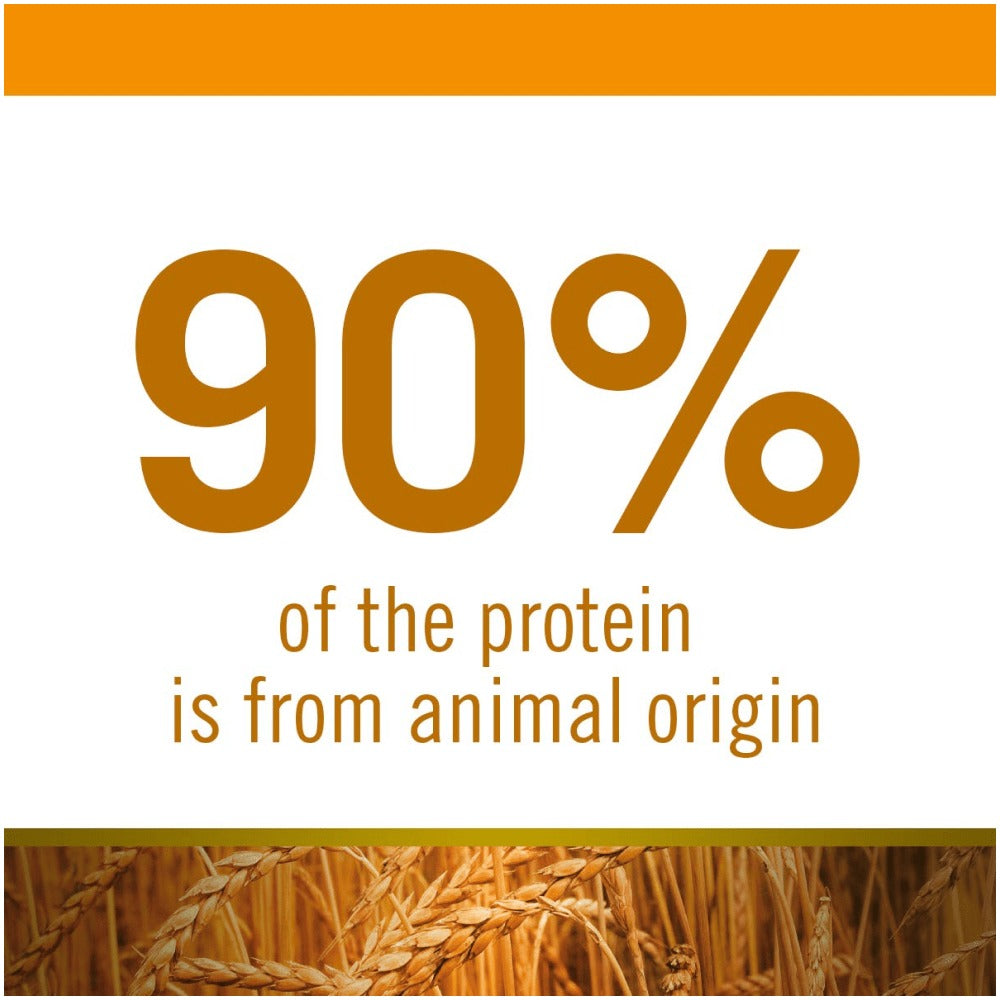 Fresh boneless chicken (20%), dehydrated chicken meat (20%), spelt (10%), oats (10%), chicken fat, dried whole eggs, fresh herrings, dehydrated herrings, dried beet pulp, fish oil (from herring), fiber vegetable of peas, dried carrots, dried alfalfa, chicken cartilages (source of glucosamine and chondroitin sulfate), inulin, fructooligosaccharides, yeast extract (source of mannan-oligosaccharides), dried pomegranate (0.5%), dried apple, dried spinach, psyllium (0.3%), dried sweet orange, dried blueberries, sodium chloride, dried brewer’s yeast, turmeric root (0.2%).