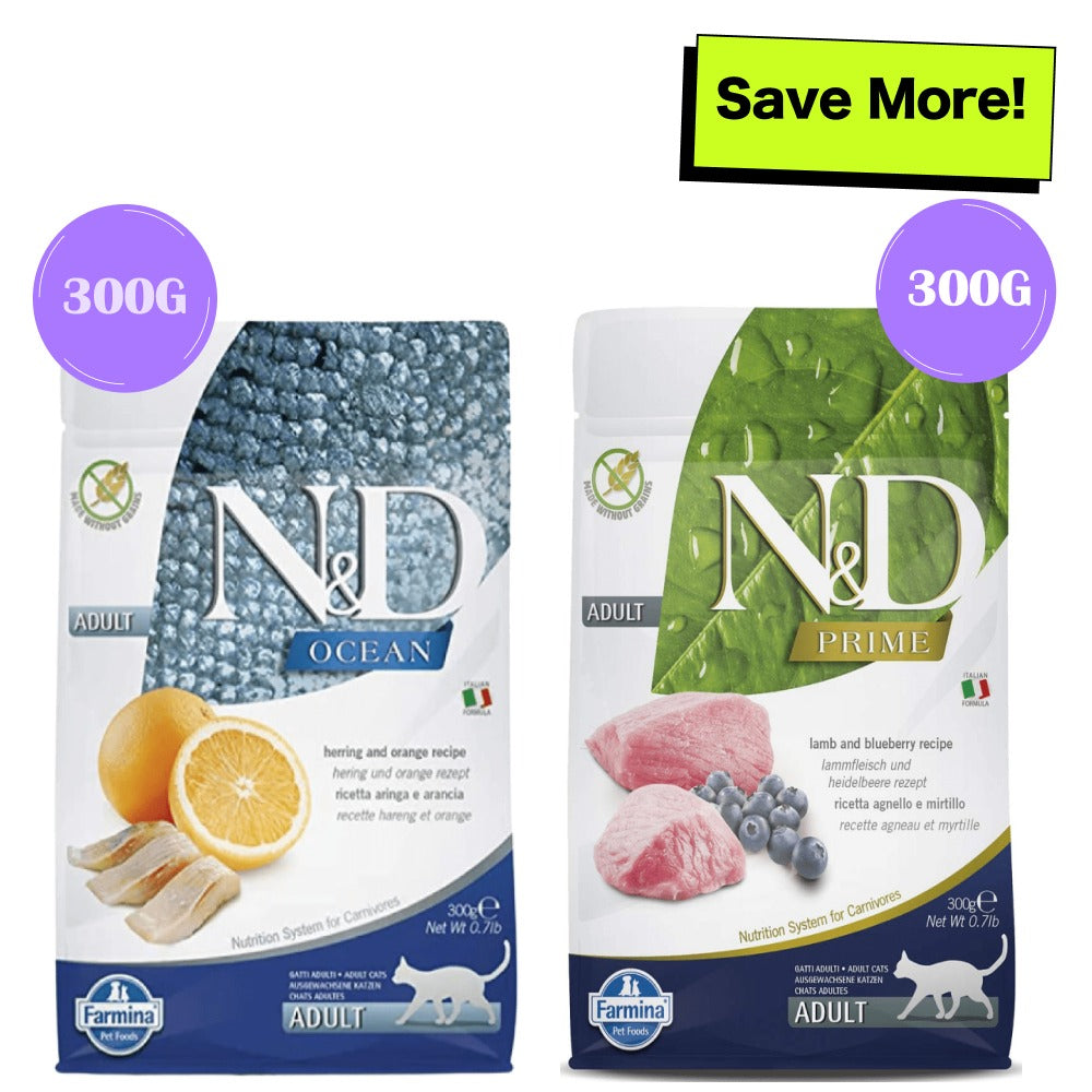 Farmina N&D Prime Lamb & Blueberry Grain Free Adult Cat Dry Food (300g)
