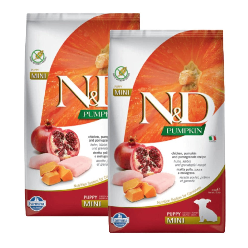 Farmina N&D Pumpkin Chicken & Pomegranate Dry Dog Food - Puppy Mini - is a grain-free formula that suits the nutritional requirements of puppies. This food is made with kibble size that is comfortable for puppies of all small breed.