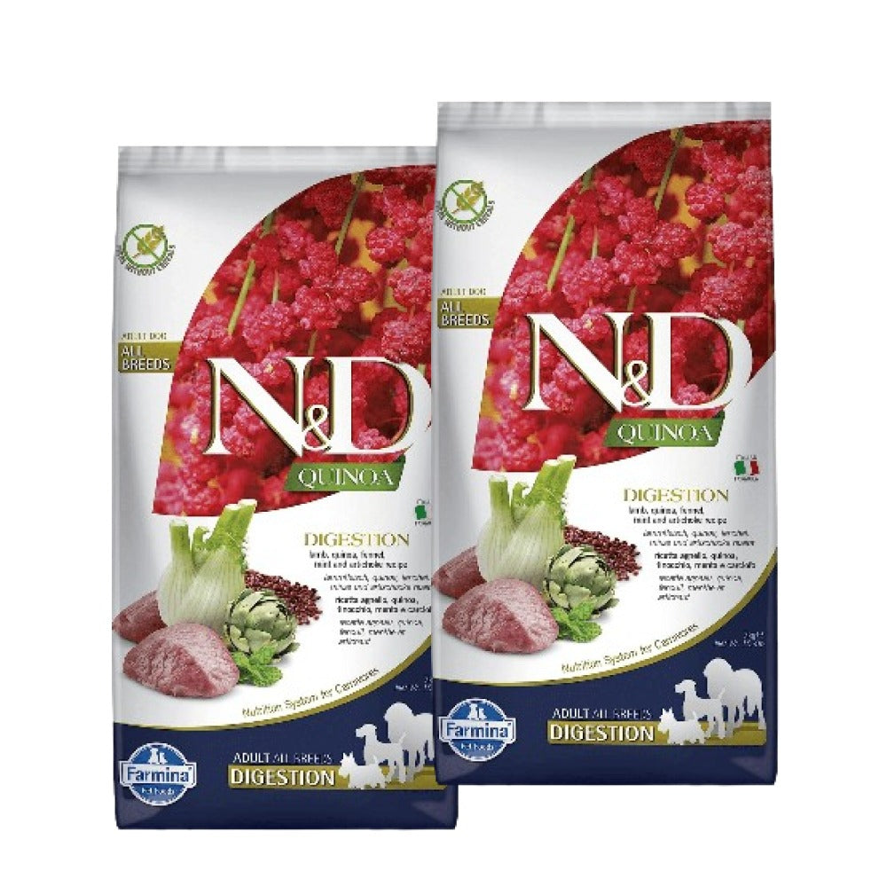 Farmina N&D Grain Free Quinoa Lamb Digestion Adult Dry Dog Food is perfect for all adult dogs of any breed size, above the age of 18 months. Highly digestible formula for the wellbeing of the intestine. N&D Quinoa Digestion is a complete dietetic food for dogs, suggested for the compensation for maldigestion and exocrine pancreatic insufficiency.