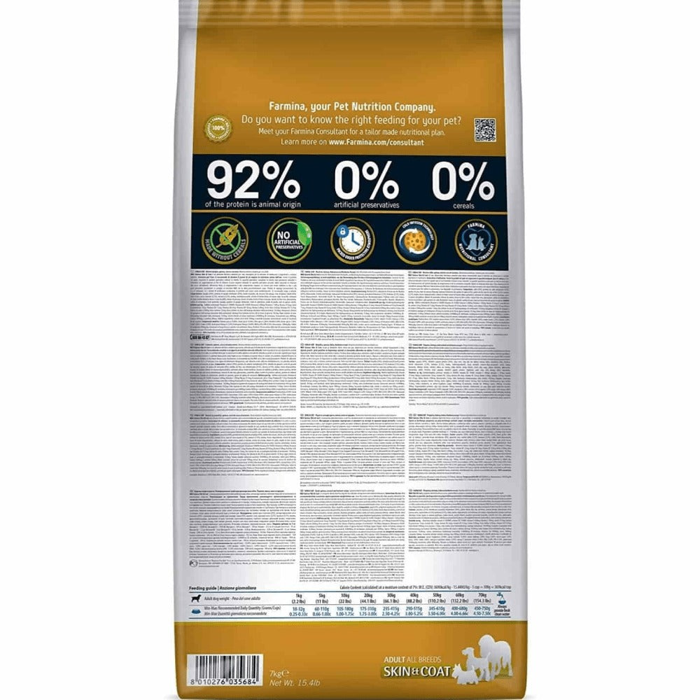 Farmina N&D Quinoa Skin & Coat - Quail, Coconut and Turmeric is a complete food for dogs, suggested for the reduction of ingredient and nutrient intolerances. It’s a specific formula for food sensitivities, useful to restore and maintain skin and hair wellness.