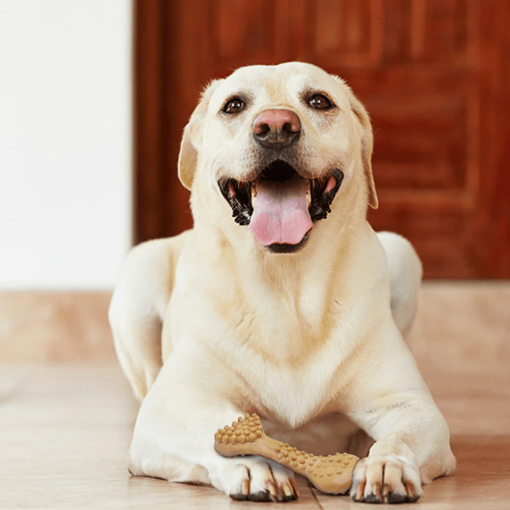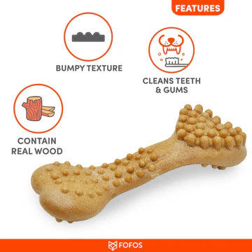 Fofos woodplay brush bone is a dog chew toy that is great for teeth and gums. This toy can help massage your dog's gums and maintain good oral hygiene. This toy contains real wood and acts as a perfect furniture substitute. bone toys such as this allow your dog to chew, bite, fetch and play while getting the right amount of exercise and also make playtime interactive. This toy is ideal for medium-large dogs (10-30kg) of various breeds such as labrador , st bernard etc above 1 year of age. This toy is strong but not indestructible and is best suited for pet dogs that have moderate chewing, and playing style. Not recommended for aggressive chewers.