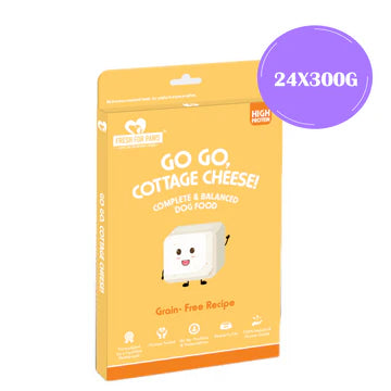Go, Go, Cottage Cheese is a great source of PROTEIN for vegetarian furry friends. It contains Cottage Cheese, Green Peas, Sweet Potato, Carrots, Moringa Powder, Apples, Flaxseeds, Blueberries, Turmeric & Stock all made together in Olive Oil.