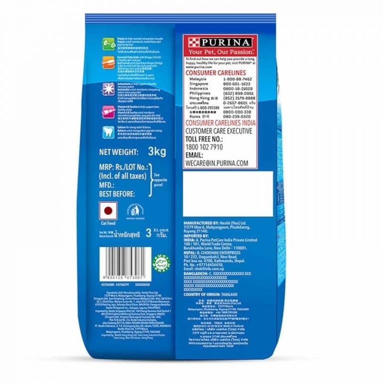 Wholegrain Cereals (Con, Wheat), Poultry By Product Meal: Wheat Gluten Soybean Dried, Minerals, Vitamins And Amino Acids, Poultry Oil, Flavours (Mackerel, Tuna, Salmon, Sardine, Milk Solids), Fish Meal, Colours.