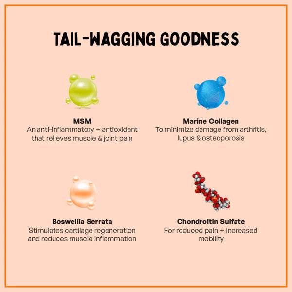 Running around all day (and sometimes all night) can be hard on your pet's bones & joints. Introducing Furlicks Hip & Joint oral strips to supplement your pet's diet with all the essential nutrients like boswellia serrata, marine collagen, curcumin, MSM, chondroitin sulfate and lutein, to support strong connective tissue and joints.