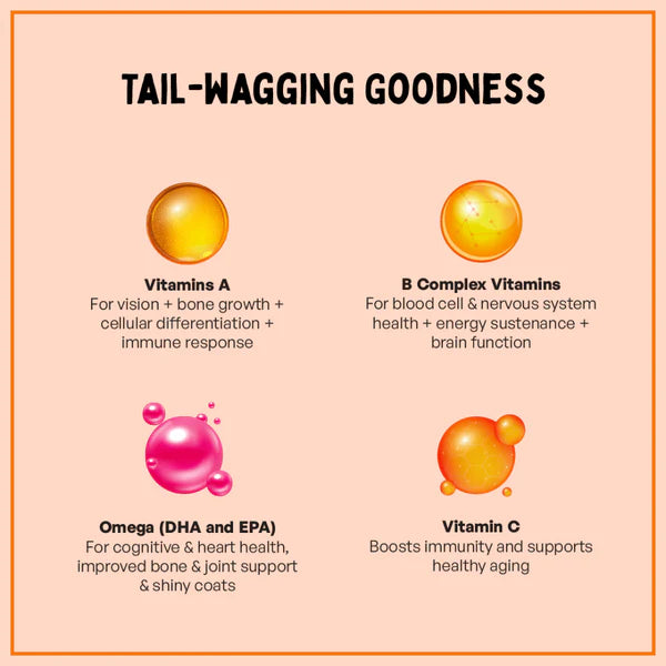 They come in a delicious strawberry flavor making it a joy to consume for your pets, without any compromises to their health as one teensy strip is enough to make them super alert, energetic and full of life. It will also make their immune system robust and their vision sharp like an eagle (thank you, Vitamin A!) Bid your farewells to scratchy coats & unhealing wounds and welcome supple skin & healthy bones.