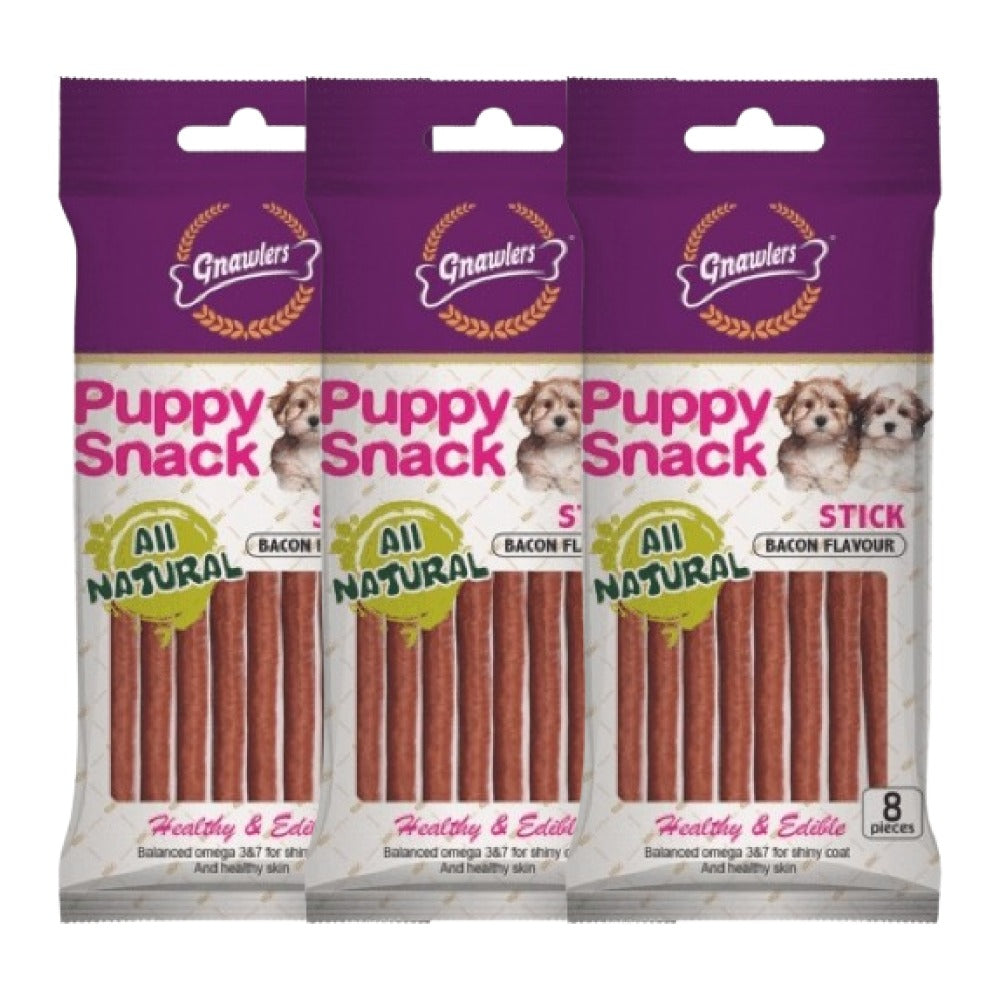 Gnawlers Dog Treats Puppy Snack Stick Bacon Flavour 8 In 1 80 Gm is a healthy snack which has been created keeping in mind dog’s distinct nutritional needs. It consists of high-quality, balanced & easily digestible ingredients which work to support the general well-being of the canine. Gnawlers dog chew treats promote the health of skin & coat. Chewing on them would also improve the dental health of the dog. A healthy chewing alternative, these chew sticks are sure to be loved by your pet.