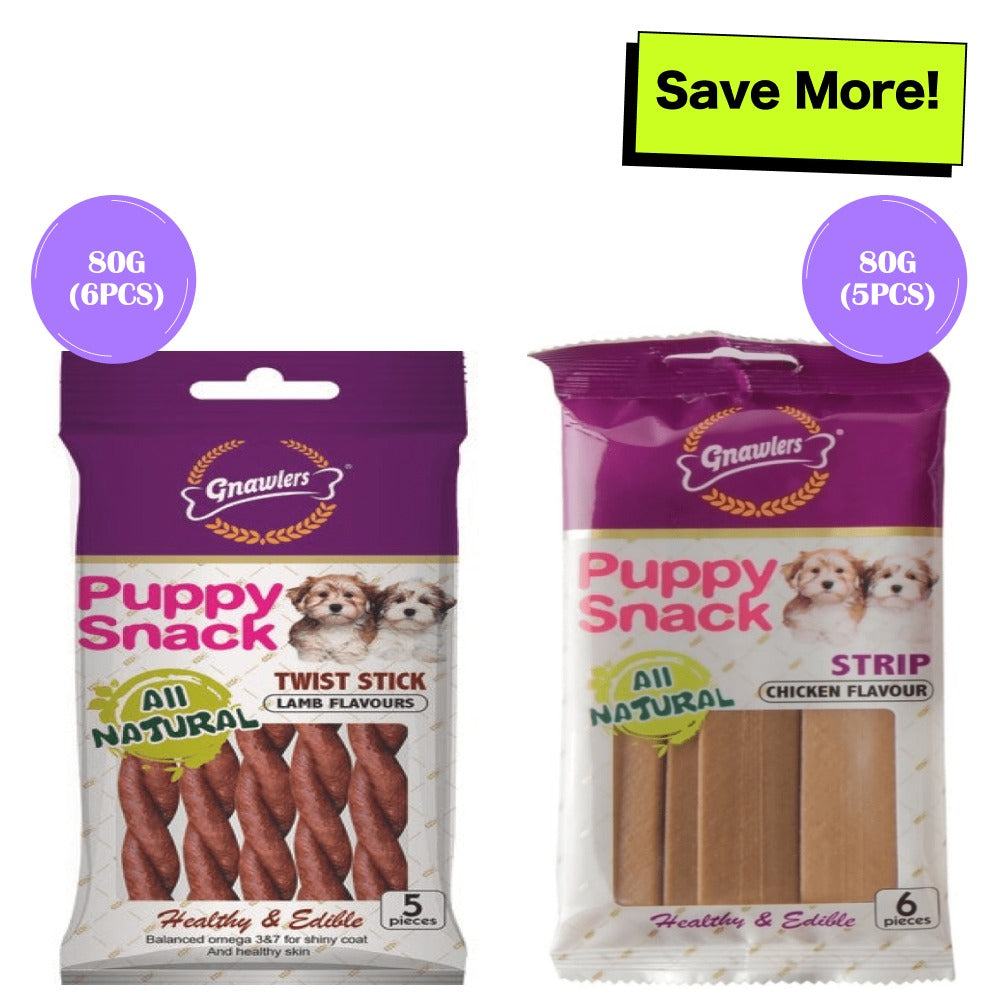 Gnawlers Puppy Snack Twist Stick Lamb Flavoured Dog Treats-80g(5pcs)