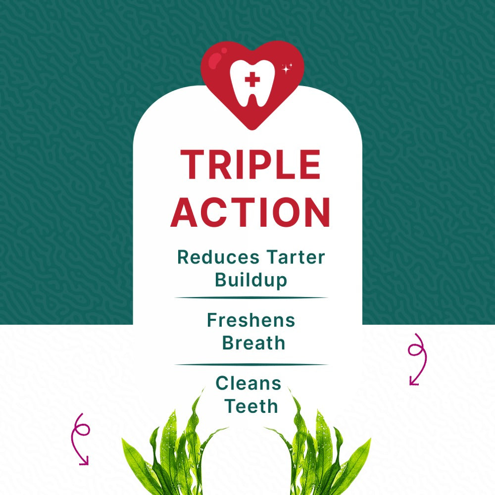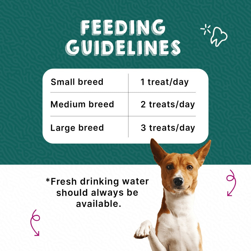 Goofy Tails Dental Hygiene Chews provide the dental care that your dog deserves. These dental chews help keep your dog's teeth cleaner, reduce plaque and calculus, and fight bad breath. Each chew uses your dog's chewing action to loosen and dislodge plaque, helping it break away from teeth. Seaweed helps to improve the health of teeth reduces plaque and tartar and assists with fresh breath. Give your pet these tasty chews daily for cleaner teeth and fresher breath.