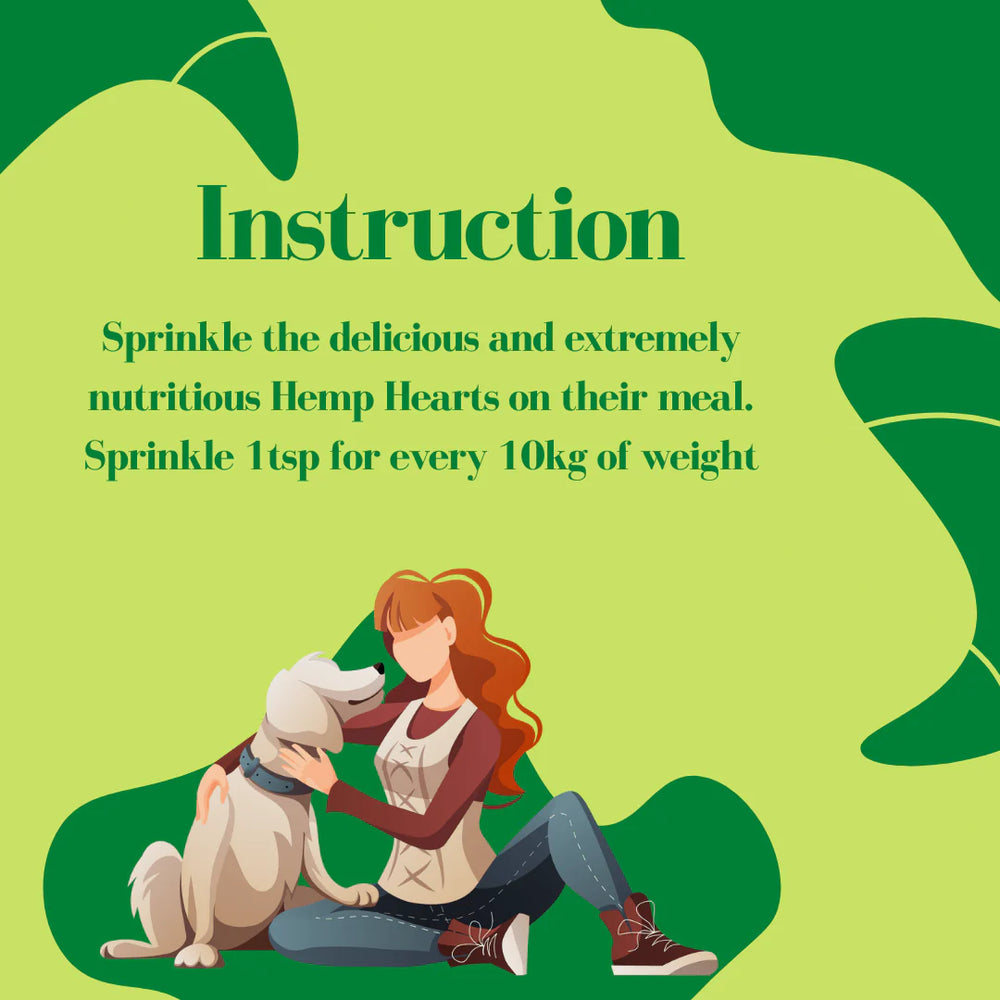 Upgrade the nutritional value of any meal by simply sprinkling the delicious goodness of Hemp hearts on it. Sprinkle 1 tsp for every 10 kg of weight