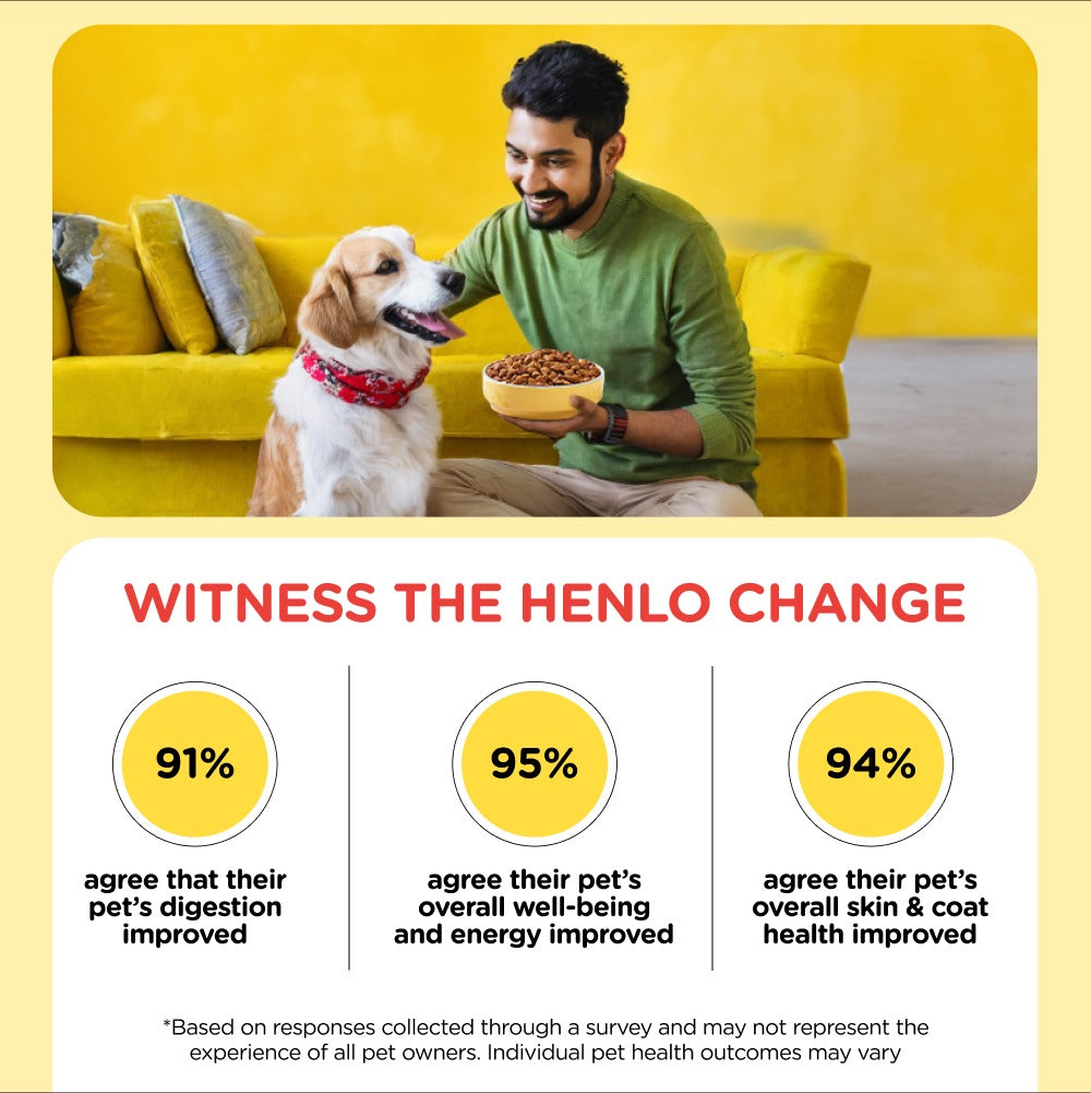 Give your dog the gift of a healthier and happier life with Henlo Baked Dry Food for Adult Dogs. We believe your dog will instantly fall in love with it, and you'll see the positive changes in their well-being.