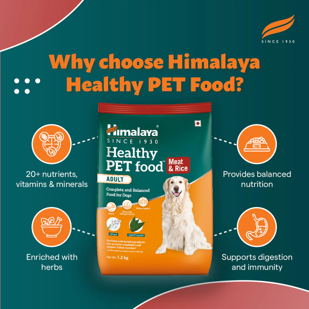 Himalaya Healthy Pet food - Adult is a complete and balanced food with over 20 nutrients, vitamins, and minerals, which provides a perfect balance of nutrition and is fortified with herbs for additional health benefits for adult dogs.