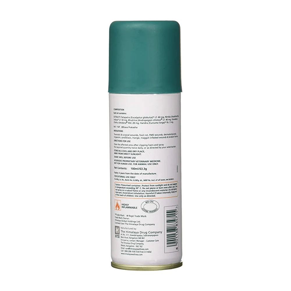 The Himalaya Scavon Vet Spray is a broad-spectrum topical spray that is antibacterial and antifungal. It promotes healing by encouraging collagenisation and epithelialization. This helps to treat lacerations, incisions, abrasions and cuts. It can be used on infective as well as non-infective and maggot wounds. It is also often recommended for surgical wounds and cases of sarcoptoc and psoroptic mange