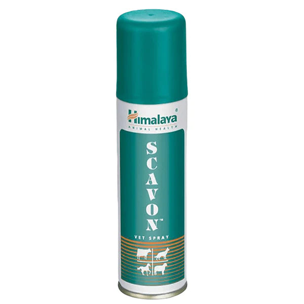 The Himalaya Scavon Vet Spray is a broad-spectrum topical spray that is antibacterial and antifungal. It promotes healing by encouraging collagenisation and epithelialization. This helps to treat lacerations, incisions, abrasions and cuts. It can be used on infective as well as non-infective and maggot wounds. It is also often recommended for surgical wounds and cases of sarcoptoc and psoroptic mange
