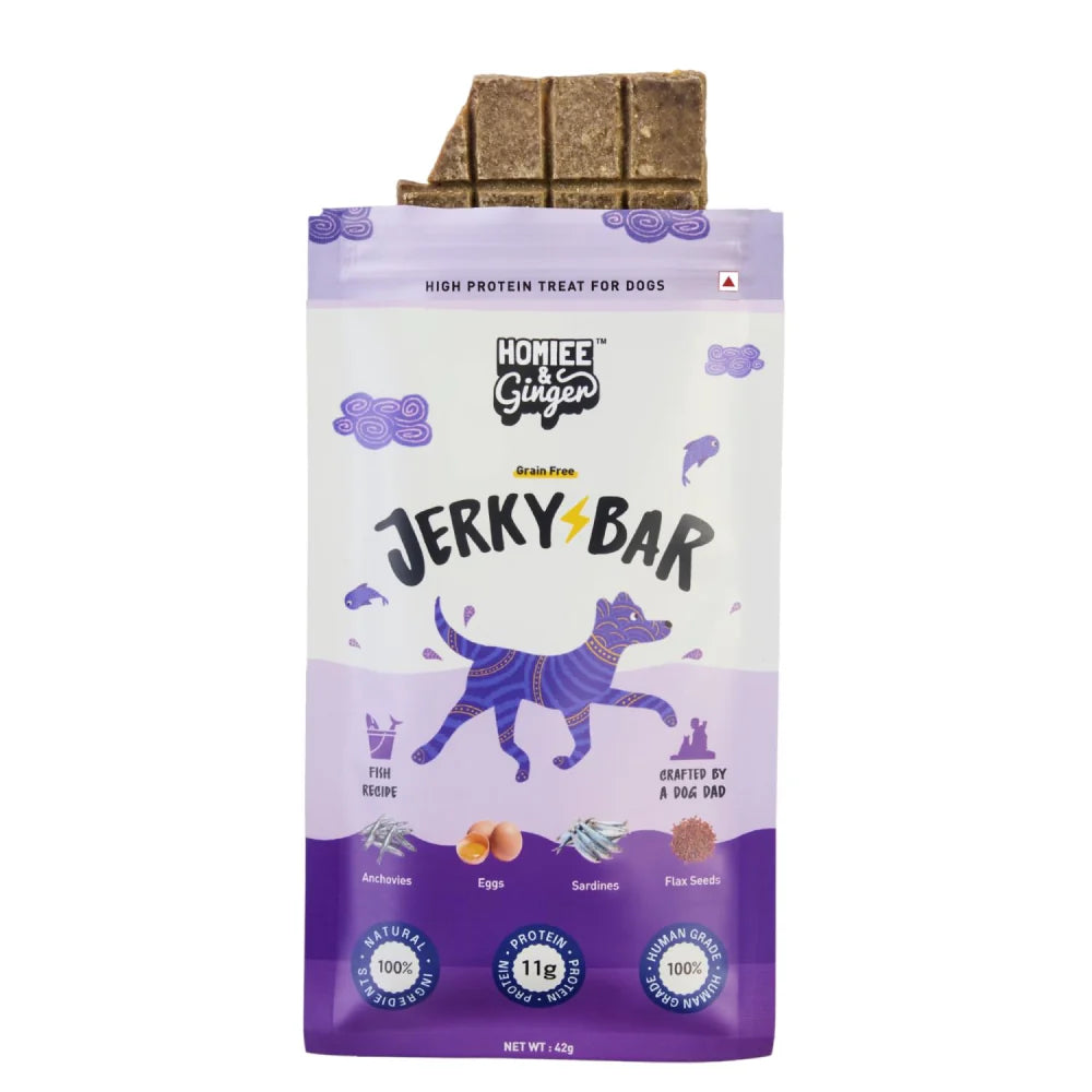 Homiee & Ginger Grain Free Fish Jerky Bar Dog Treats: (45g)